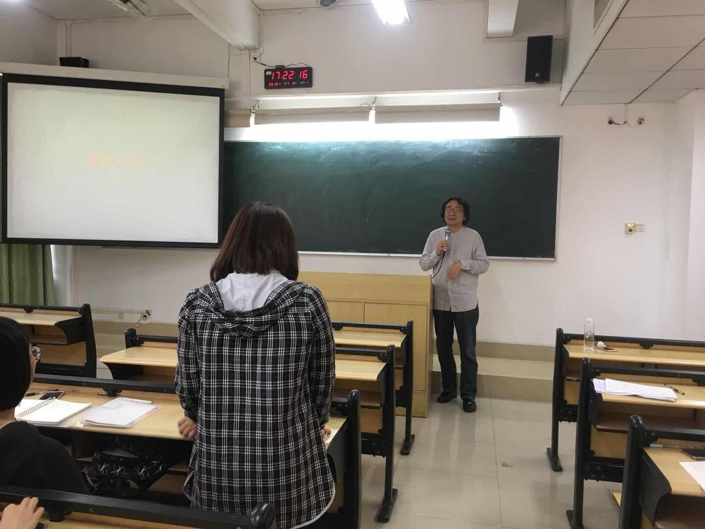 ,为汉语154班的同学做了一场精彩的诗歌写作讲座“生命中的一场自觉”,讲座由李俏梅老师主持。