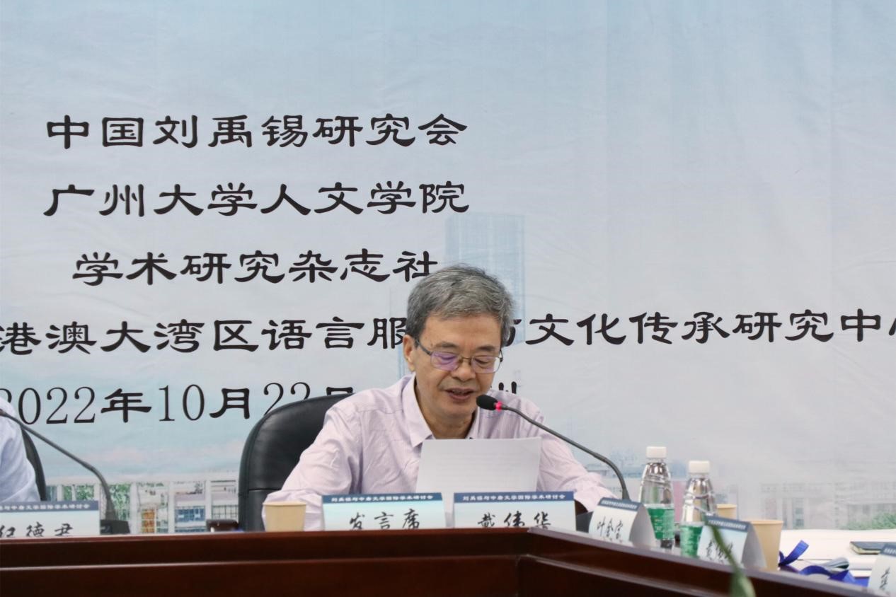 尊敬的叶金宝主席、张其学校长、李浩会长、彭玉平主任、禤健聪院长,中国刘禹锡研究会各位同仁、各位专家和朋友,大家上午好!