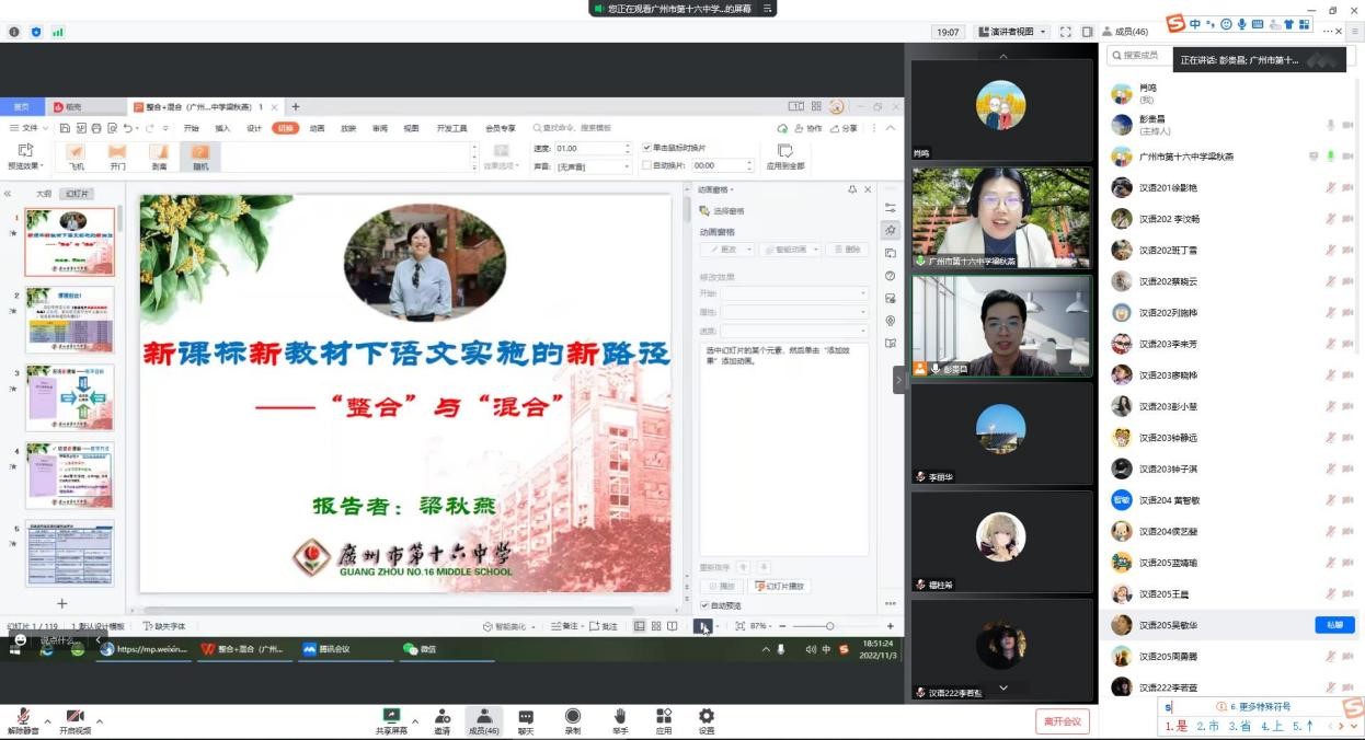 文学系主办的“新课标新教材下语文实施的新路径——‘整合’与‘混合’”主题讲座在腾讯会议顺利举行。讲座由广州市第十六中学语文高级教师梁秋燕主讲、成人电影