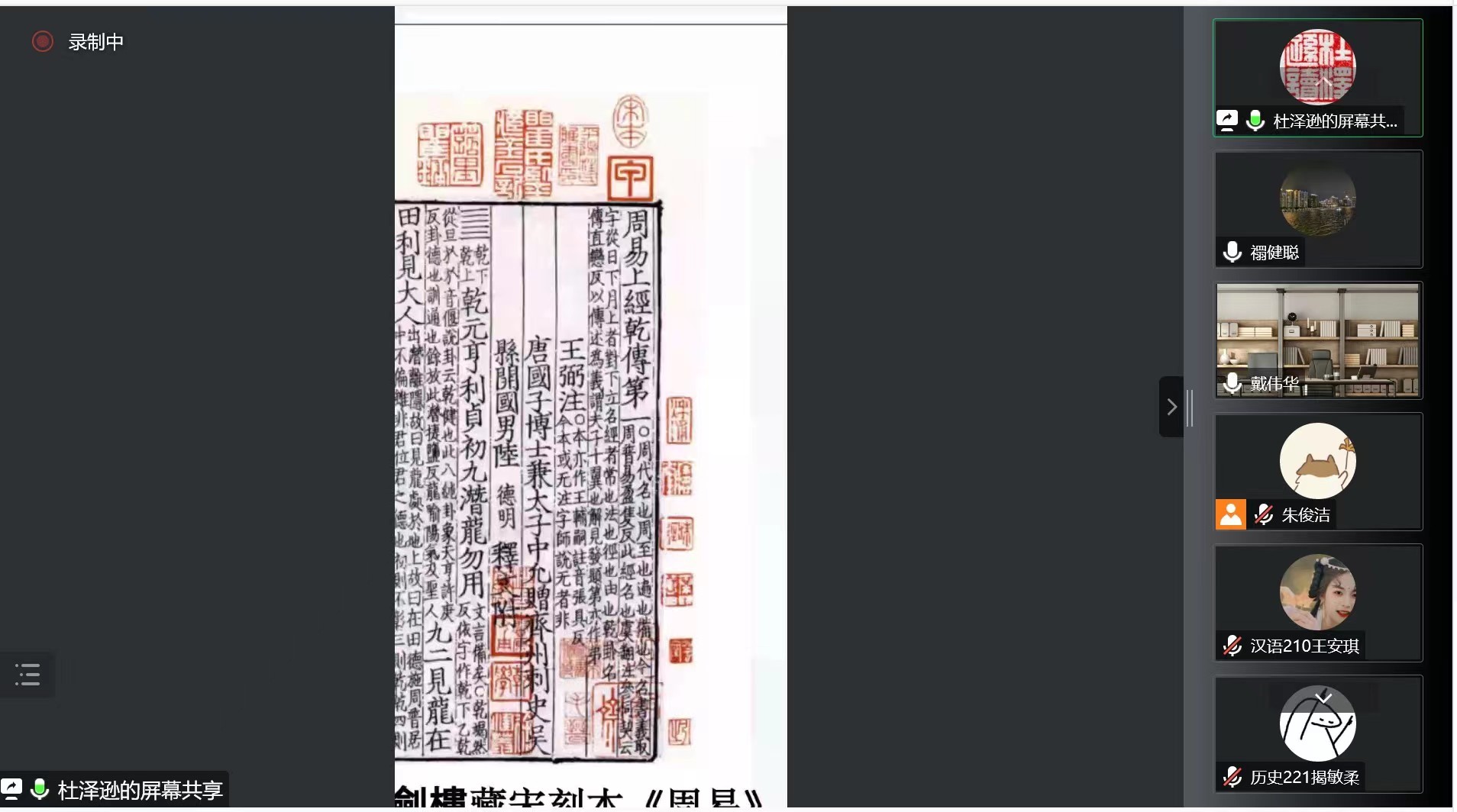 艺文讲坛第五十四讲在线上举行,主讲嘉宾为山东大学文学院院长、古典文献学教授、博士生导师杜泽逊教授,讲座题目为“铁琴铜剑楼藏宋刻本《周易》在校勘上的得失”。戴伟华教授与谈,禤健聪院长主持。