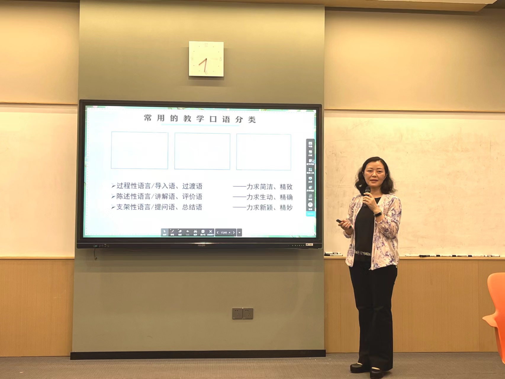 同学们在模拟训练中进行了导入语、应变语和综合语言的设计,获得了楚云老师精妙点评与中肯建议。楚云老师提出,教师应提高自己对语言艺术的敏感度,刻意训练自己的口语表达技巧,用心锤炼教学口语。