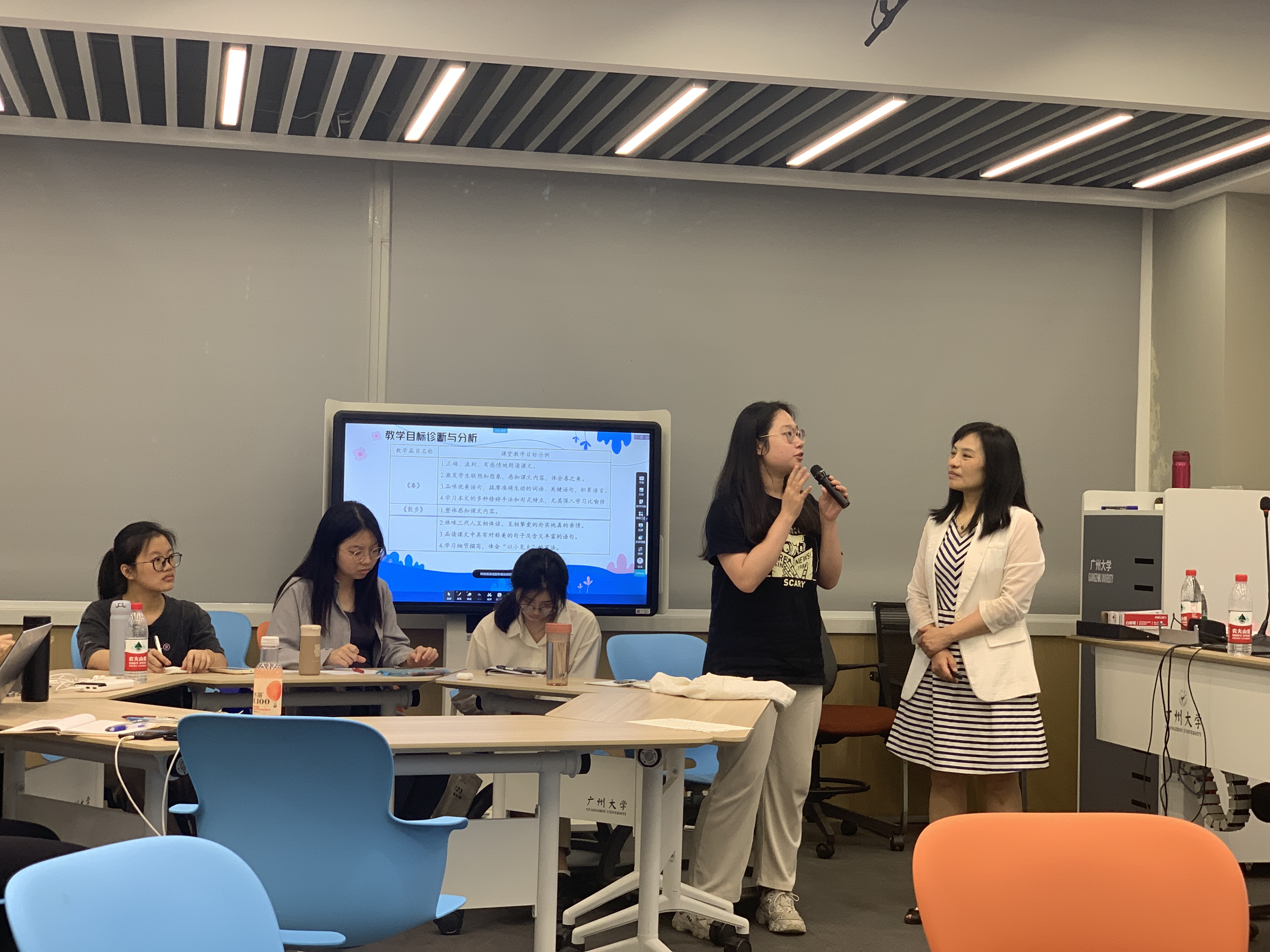经过激烈的讨论,各小组展示了各具特色的教学设计成果。以评促学,携手共进,娄老师鼓励小组进行互评补充。在互评中,同学们不但发现其他小组教学设计中的亮点,还提出了一些改进建议,在生生互动中教学活动设计逐步完善。