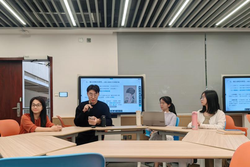 在文逸楼227室举行了第十二期博士后学术沙龙。本期沙龙主要聚焦禅宗颂古诗的文体属性、主要类型、文献数量、创作理念、艺术特征以及张商英、释慧开颂古诗的个案研究,借以探究佛教文学视域下禅宗文体的研究路径。同时出席本次博士后沙龙的还有文学系、语言学系和历史系的博士后,以及中国古代文学、文献学专业的硕士研究生。