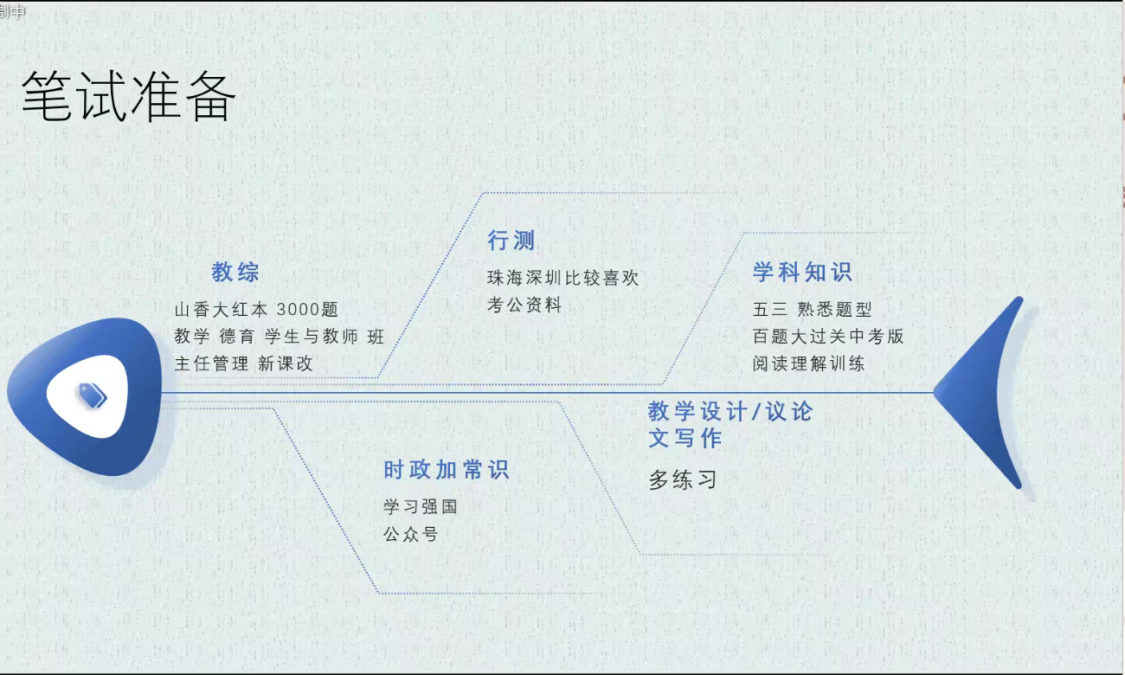 罗诗韵同学主要介绍了笔试需要重点准备的五大板块、面试的备考方向以及面试的详细流程,还特别提到了结构化和答辩的注意事项。陈俏祺同学从自己秋招和春招的考编经历出发,介绍了广州不同区域的考情,并推荐了笔试备考资料及试讲、无领导面试的练习办法。郑思懿同学从深圳的考情出发,建议同学们多关注考察内容,并从自我介绍、结构化、模拟课堂三个方面分享了备考心得。赖宇慧同学首先介绍了自己深圳和广州的考编历程及考试内容,然后详细分析了面谈和结构化的备考策略及答题思路,最后分享了试讲经验,包括如何熟悉教材、如何练习等。