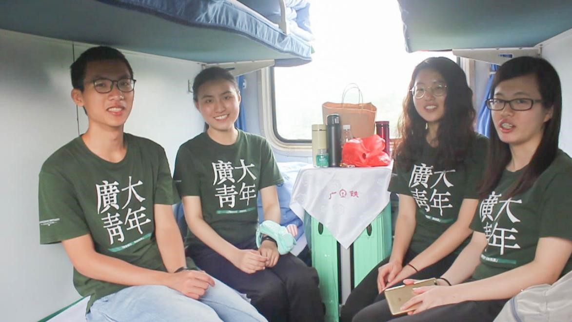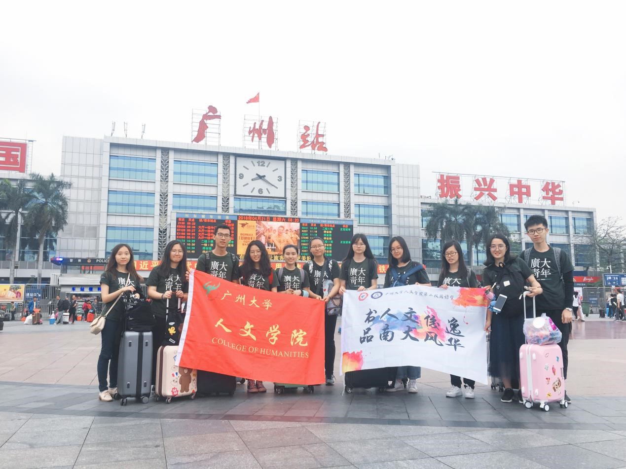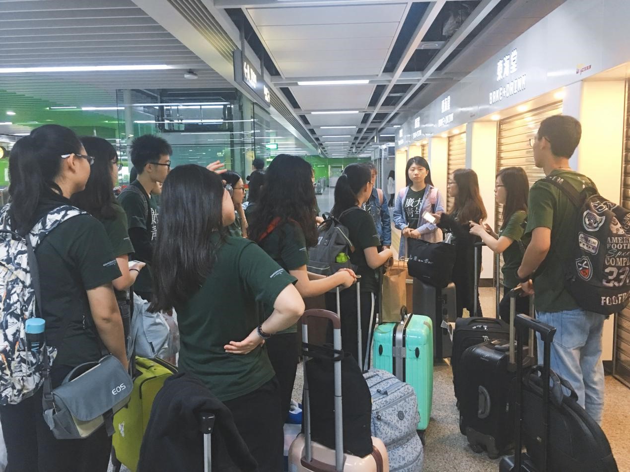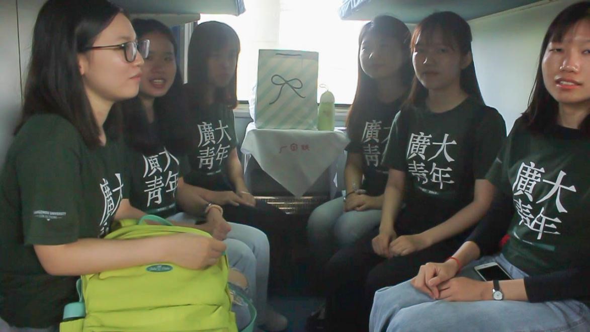 赴南京大学文学院“第二校园访学团”的老师和同学们早早出发,到达广州火车站,搭上即将开往南京的火车。