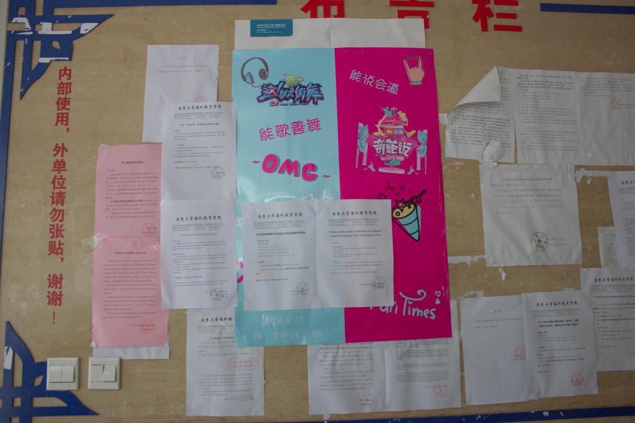 随后我们来到了南京大学鼓楼校区,重点参观了南京大学海外教育学院的曾宪梓楼,透过简介、公告栏、交流室等了解到留学生教育方面的情况。