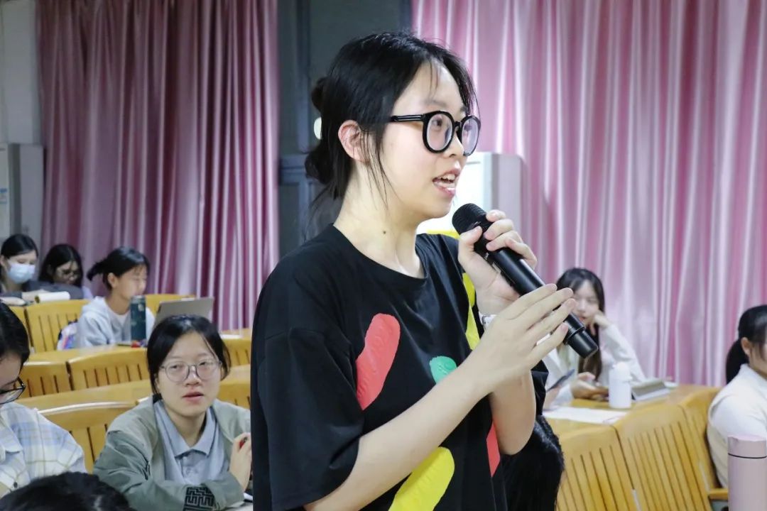 余诗越同学则从百团大战引入讲述内容,分享了风荷曲艺社的社团活动内容,强调守好文化根基的重要性。