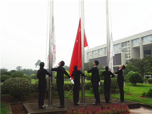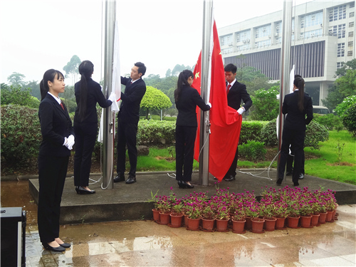 早上7时左右,身着正装的升旗手们在升旗台前威严伫立,等待升旗仪式的开始。7时30分,随着激昂的国歌响起,神气的升旗手挥动国旗,鲜红的五星红旗冉冉升起。