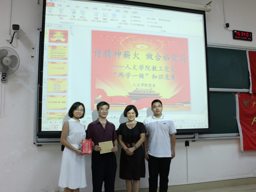 最后,院党委书记李芬宣布,中文系教工党语言支部获得了知识竞赛的一等奖,中文系教工党文学支部获得了二等奖,行政党支部、历史系党支部和秘书系党支部获得了三等奖。