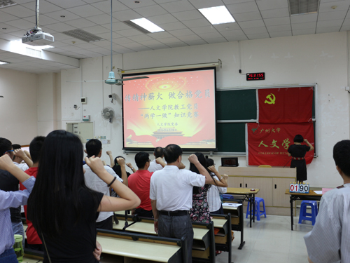 (全体成员在党旗面前宣誓)