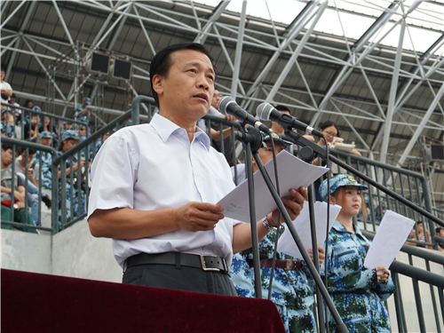 2015级学生军训汇演暨总结表彰大会于北区田径场成功举行。在主持人宣读了开幕辞后,副校长董皞介绍了到场的校党委书记庾建设、校长邹采荣等领导嘉宾,并宣布表彰大会正式开始。