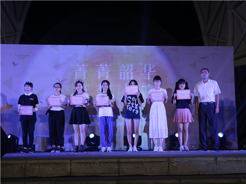 节目还未开始,暮色四合,灯光闪烁,现场的气氛已经非常热烈。本次晚会以“菁菁韶华,筑梦人文”为主题,分为“咏·倚风歌”、“望·照春秋”、“逐·新宿梦”三个部分。