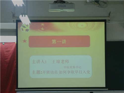 (院党委书记王琼为同学们讲授如何争取早日入党的相关内容)