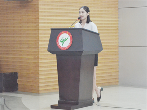 学生会代表上台演讲。她从工作创新、权益保障及内部建设三个方面介绍了成人电影
