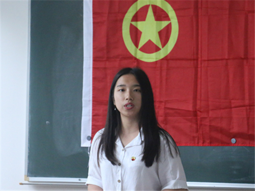 接下来,历史161班的同学们围绕“五四”这一主题,发表演讲。其中,马淑华同学给大家细述了五四运动代表人物李大钊“铁肩担道义,妙手著文章”的一生,重现了追求民主自由、求真求知的革命先驱形象。曽祥辉同学以五四运动的历史背景为切入点,通过提问互动让大家进一步熟悉五四青年节及共青团的相关知识。在交流感想环节中,李沐霖同学提到个人自由与社会进步的关系,引发同学们对不同时代的爱国行为的思考,提醒同学们警惕自我主义。