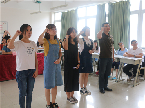 接着,由冯健生老师领誓,带领同学们重温了入团誓词。部分当年在五月份入团的同学还和大家一起回顾了自己入团时的情形。