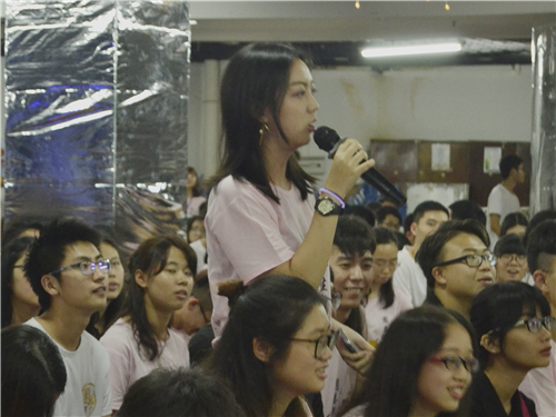 在整个晚会过程中,主持人和现场观众们也是互动不断,听歌识曲和念绕口令轮番上场,气氛十分活跃。表演结束后,人文团委、学生会主席陈安怡上台为晚会作简单的总结,并希望人文土木两院可以有更多的交流合作。