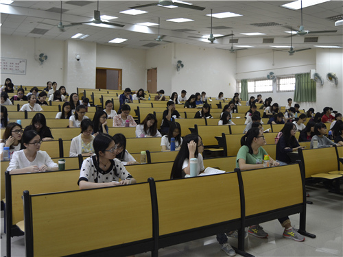 演讲结束后,入党积极分子们开始进行了党团知识考试,同学们奋笔疾书,认真地写下每道题目的答案。