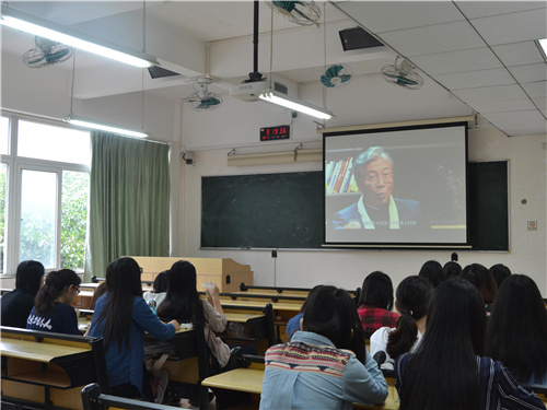 随后副院长王凤霞上台对视频中的观点发表了自己的看法,并提醒同学们,作为戏剧与影视方向的学生,要对多媒体中的形象塑造和演讲技巧有一定的敏锐度。她指出,视频中郑若麟先生作为一个媒体公众人物,柔化的形象塑造是成功的;但演讲中说服力还不够,提出的建议措施步子太保守,立场不够开放。要对抗国外文化的“精神侵略”,主要还是要建立国人的主体意识,增强国家的综合实力,而不是一味地批判青年人的思想不成熟性。