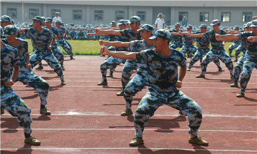 紧接着的是汇报表演,队列操、匕首操、战伤救护与军体拳表演方阵依次登场,各有千秋。整齐划一的动作与高亢嘹亮的口号引得现场掌声不断。