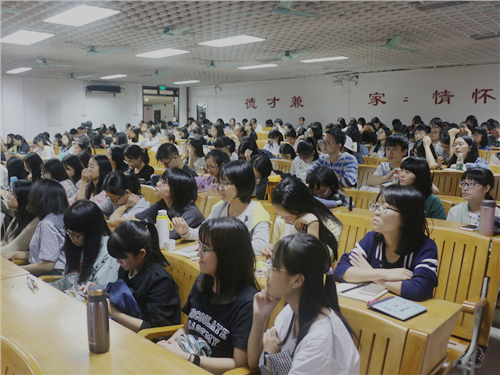 朗诵环节结束后,邵薇老师对访学团的日常行程进行了简短的介绍,并赞扬了访学的同学们勤奋好学与不畏困难的优秀品质。同时,她也表明此次访学之行收获良多,学习到了华东师范大学的一些先进的教学管理模式,希望成人电影