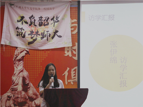 第二校园访学汇报会于图书馆讲学厅成功召开。院党委副书记刘军军老师、院团委书记兼17级辅导员张立老师、院团委副书记韩宝玉老师(访学团随团指导老师)、16级辅导员陈楚敏老师以及邵薇老师(访学团随团指导老师)出席了本次汇报会。
