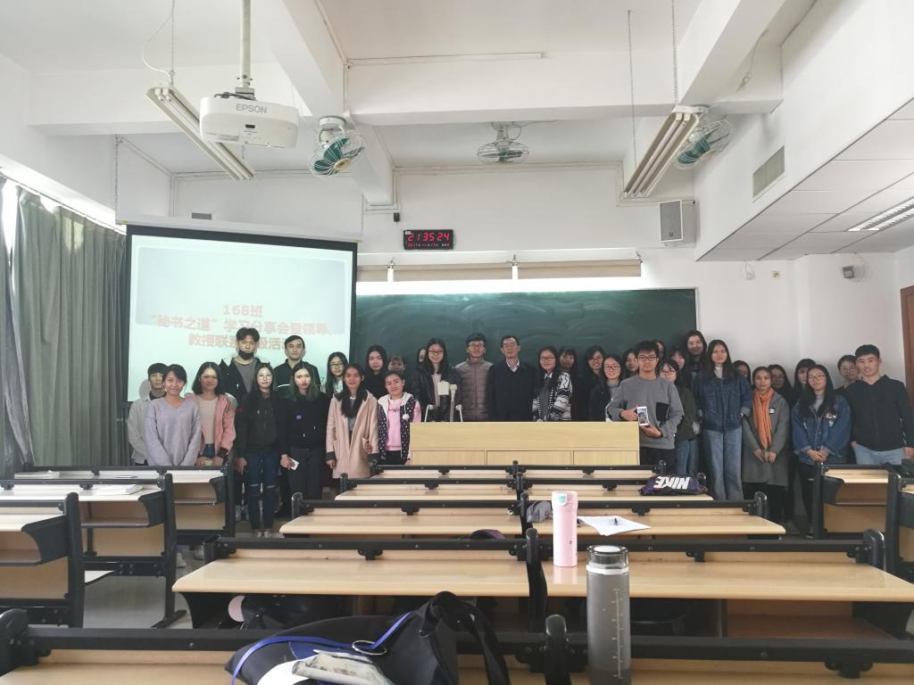 活动氛围轻松活跃,最后,师生合影留念,此次中文168班的领导、教授联系班级活动圆满结束。