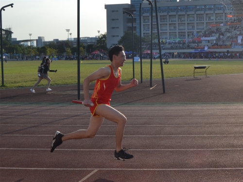 (步子迈开,飞驰在红色赛道)