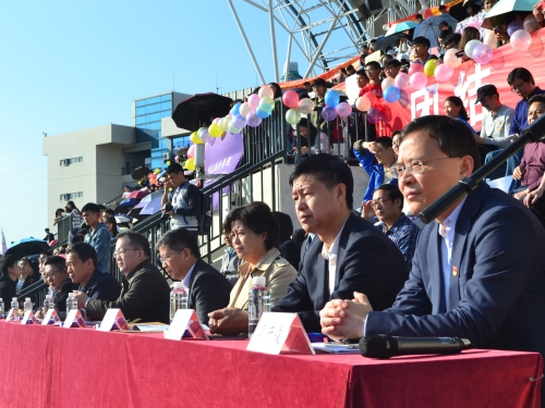 第十四届体育节暨田径运动会于北区田径场拉开序幕。校党委书记屈哨兵、校长魏明海、校党委副书记、纪委书记张强等校领导及各院领导到场观看比赛。