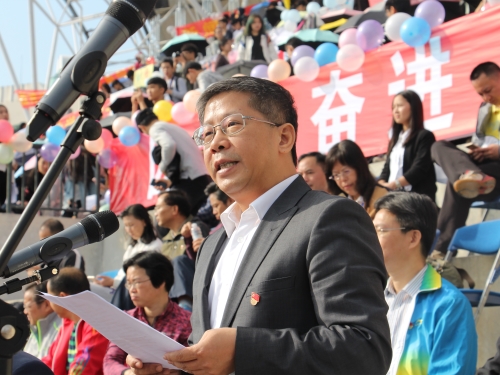 开幕式上,校长魏明海为本届校运会致辞,提到体育是实现中国梦的重要内容,可以塑造人坚韧不拔和团队合作的精神,鼓励同学们“爱体育”,参与更多的体育活动以强身健体,并进一步推动成人电影