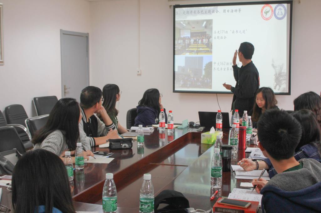 关于人文团委、学生会以及春秋学社的介绍与分享,则是由我团的冯志惠同学与王惠婷同学负责。因为各大高校的团委、学生会乃至其下属的各社团等的部门设置与分工其实大同小异,所以志惠同学与惠婷同学的分享着重于人文团学以及春秋学社各部门承办的各种特色活动等。在困惑与问题的环节,两位同学提出了有关青马工程和团员培训、校刊与院刊的创办两方面的问题。于师兄也为我们分享了南大“青共校”与“军队考察”的特色团员培训体制,且就创刊的问题为我们做了有关记者团、凝眸、重唱诗社等社团的介绍。