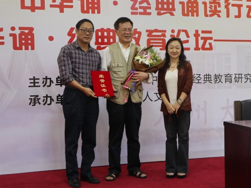 院长纪德君、院党委书记王琼给曾大兴教授颁发荣誉证书)