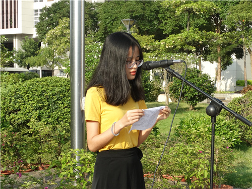 学生团委副书记林慧婷同学在国旗下进行了主题为“不忘初心,逐梦前行”的演讲。