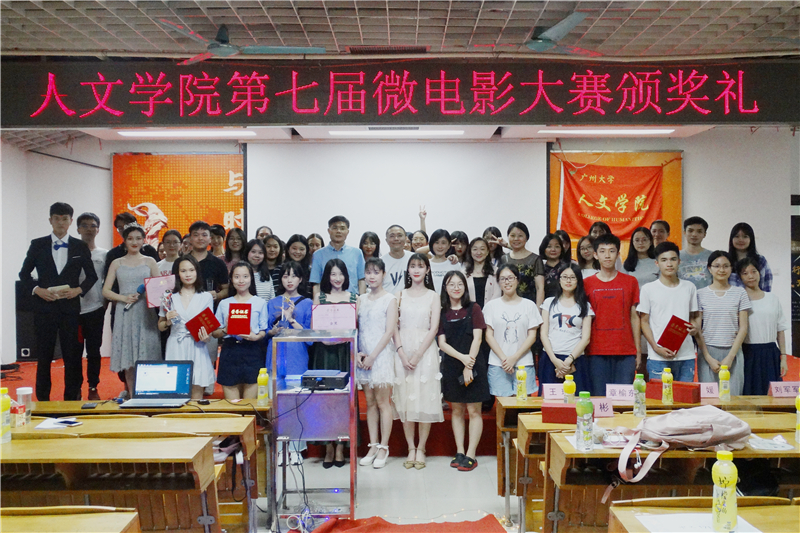 第七届微电影创作大赛“平行镜头·交叉世界”颁奖典礼于讲学厅顺利举行。院党委书记王琼老师、广东省电影家协会青年影视创作基地主任章榆东导演、院党委副书记刘军军老师、戏剧与影视学系副主任周文萍老师等出席了该次颁奖礼。