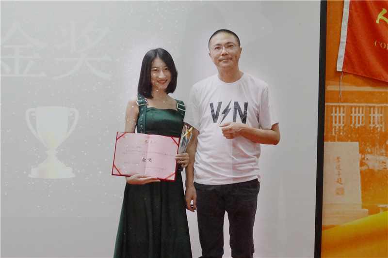戏剧与影视学系副主任周文萍老师为铜奖得主颁奖)
