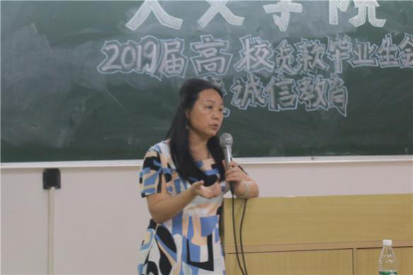 至此2019届高校贷款毕业生会议暨诚信教育会议顺利召开,同学们对诚信贷款有了进一步的了解,他们纷纷表示:诚信是立身之本,国家在他们最需要的时候给予了助学贷款政策的支持,减轻了家庭的经济负担,使他们顺利完成学业,在今后他们会诚信还款、认真履行贷款合约,诚于心,信于行,做诚信广大人。