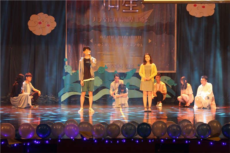 老师代表一同上台,带来朗诵表演。舞台上,恩师们深情地表达着学院对每一位毕业生最真挚的祝福,舞台下,学生们用阵阵掌声回应着。现场气氛也一度到达高潮。逐梦的道路上既有阳光风雨相随,也有欢笑泪水与共,恩师们的一路陪伴与支持,将永远铭记于心。