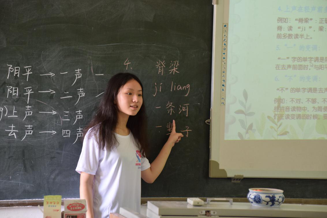 送课既包括南越国史、南越工坊等传授南越文化的课程,又包括中国传统文化、自然科学、人文地理等开拓学生视野的特色课程,更有中国近代史与五四精神等弘扬爱国精神、激励孩子们奋发向上的课程。同时开展的送展活动中,琳琅南越王展向学生们展现了南越王墓的奇珍,南越美食文化展则生动地描绘了古人生活宴饮图景。此外,家访、文艺汇演等活动增进了支教队员们与当地居民的情谊,推广普通话活动也让当地居民意识到学习普通话的重要性和必要性,从而更加鼓励孩子学习普通话,让普通话说得更熟练、更流利。