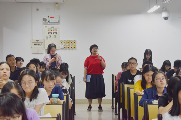 讲座伊始,冯娜老师让同学们用十个及以上的词汇来描述自己的家乡,由此引入诗歌的基本单位——词汇。她指出,大多数人在该情形下都会使用相似的词汇,从而指出当下人们词汇量匮乏的现状。词语是文学创作的基石,所以冯老师认为同学们现阶段首先需从词语入手,掌握高级且丰富的词汇以创作出更高水平的诗歌。