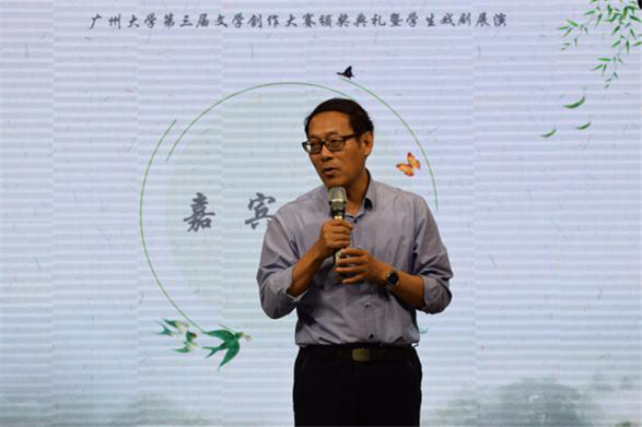 在颁奖典礼正式开始前,纪德君院长为本次颁奖典礼致辞。纪院长提出,文学应成为年轻人的存在方式,并将人文素养的培育提炼为“多读书、读好书、会读书”九个字。最后,纪德君院长号召同学们积极参与文学创作,并祝愿文学创作大赛越办越好。