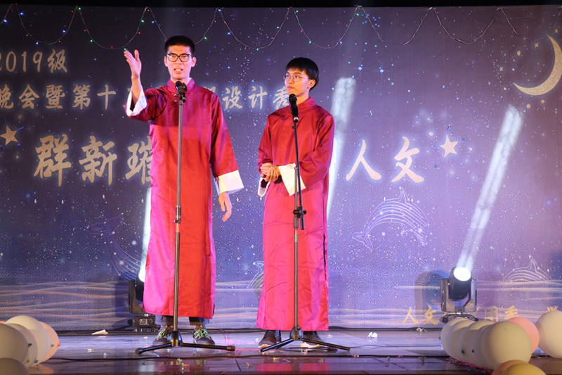 人文诵读小组的《古往今来》拉开了晚会的序幕,他们对经典作品的生动演绎表现了人文学子继往开来的决心。当观众还沉浸在国学古韵中时,舞蹈队的《adios》、歌咏队的《筑梦者》显示出青年的朝气,点燃了现场氛围。