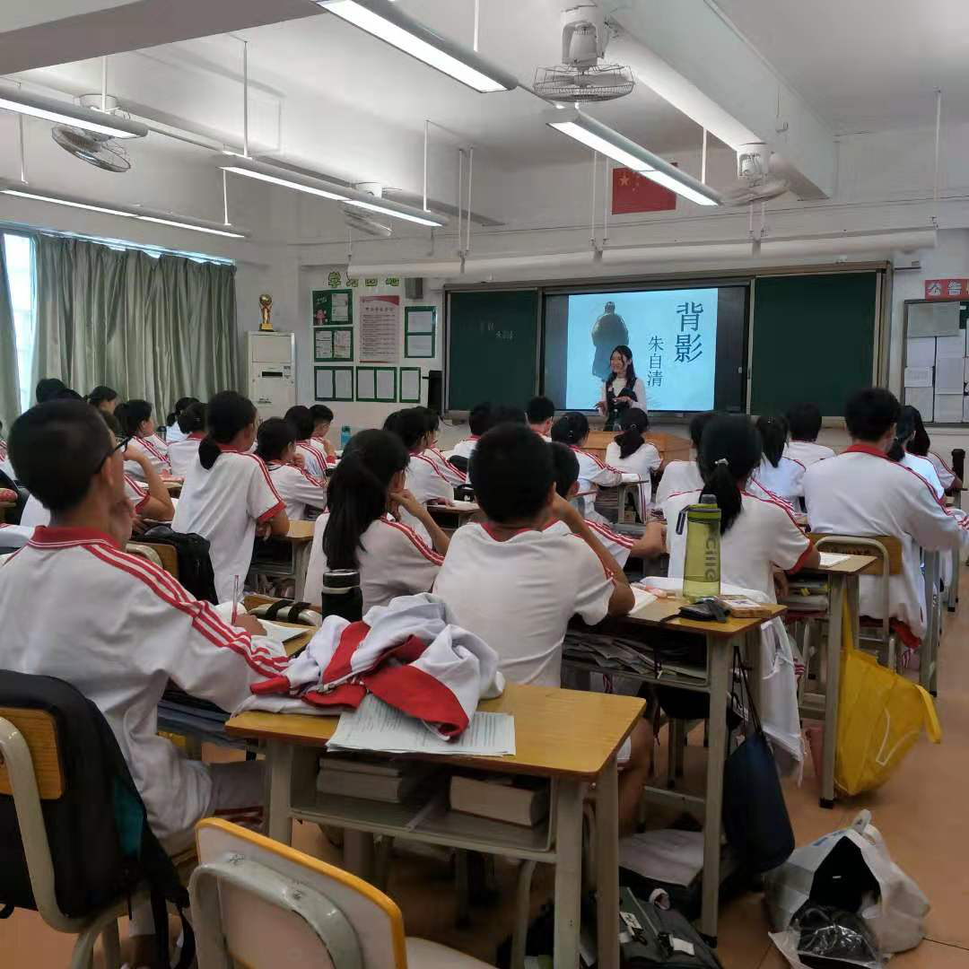 郑老师是广东省特级教师、广东省“南粤优秀教师”、广州市“十佳青年语文教师”、广州市“百佳班主任”,一直十分支持我们工作坊的活动开展,本次座谈会他以《背影》为例,给同学们分享了关于个人从教成长心得以及关于初中语文阅读教学的宝贵经验。
