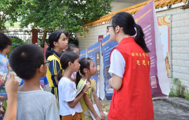 16名大二、大三学生组成,成员均为人文讲解队西汉南越王博物馆分队的队员,他们秉承“扶贫先扶智,扶智先通语”与“让博物馆走出去”的理念,暑假期间,深入梅州大埔县光德镇开展推广普通话和博物馆支教活动。团队成员通过开设汉字课、朗诵课、南越王史等课程,辅助以普通话政策宣讲、小小讲解员培训、摊位推广、送展下乡等形式,将博物馆资源、普通话推广资料等带到山区,带给山区的每一个人,向当地群众传播先进的教育、文化知识,让他们接受与城市同等的教育,进行文化传承,助力脱贫攻坚战。