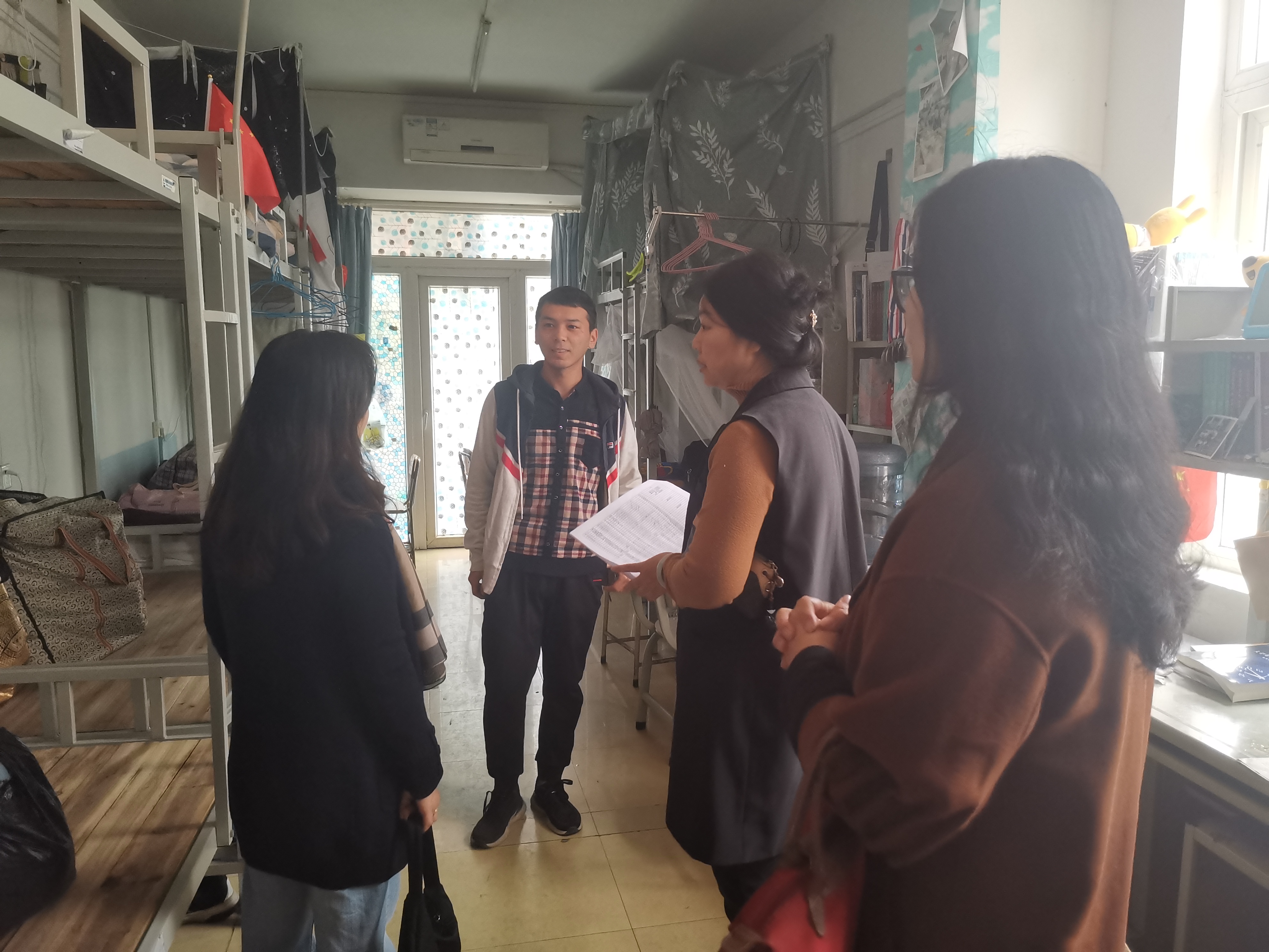 党委王琼书记、刘军军副书记带领学院辅导员到学生宿舍进行走访并作安全纪律提醒,重点走访了新疆籍学生及毕业班学生宿舍。