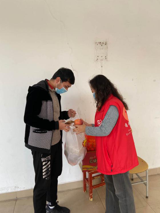 对于留校的13名同学,学院从线上线下多方位进行关心关注,每日掌握留校学生的动态信息,并了解他们的需求,为他们购置所需物品,并贴心地为他们送上水果,鼓励他们坚定信心,共同打赢这场攻坚战。