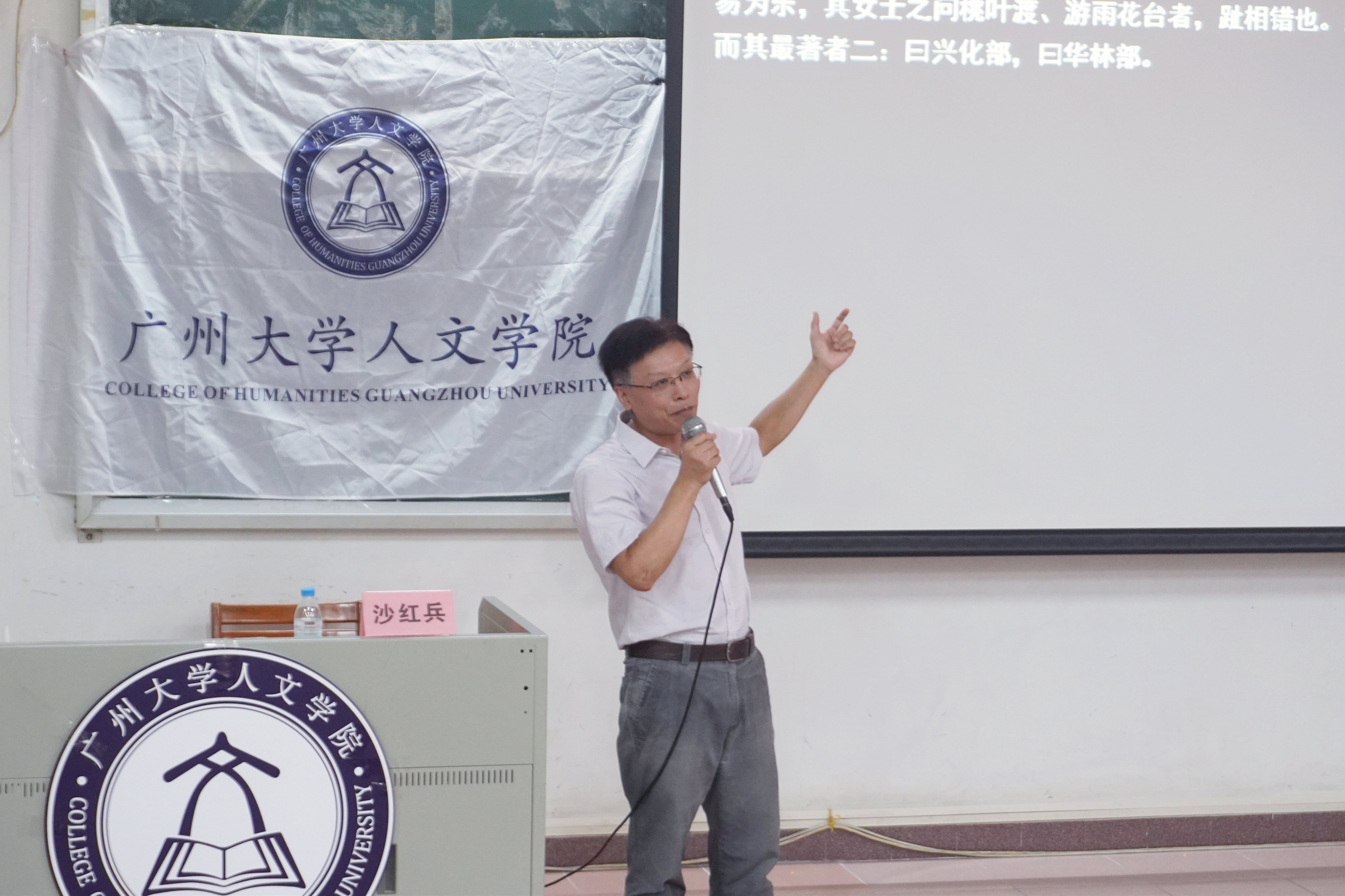 “最受学生欢迎的老师”沙红兵教授带来了主题为《从<语文>到“人文”》的名师第一讲。沙教授结合与专业相关的书籍知识,通过幽默风趣的语言向同学们介绍古文内容,同学们都被沙红兵教授的讲课方式所吸引,现场不由传出阵阵欢声。