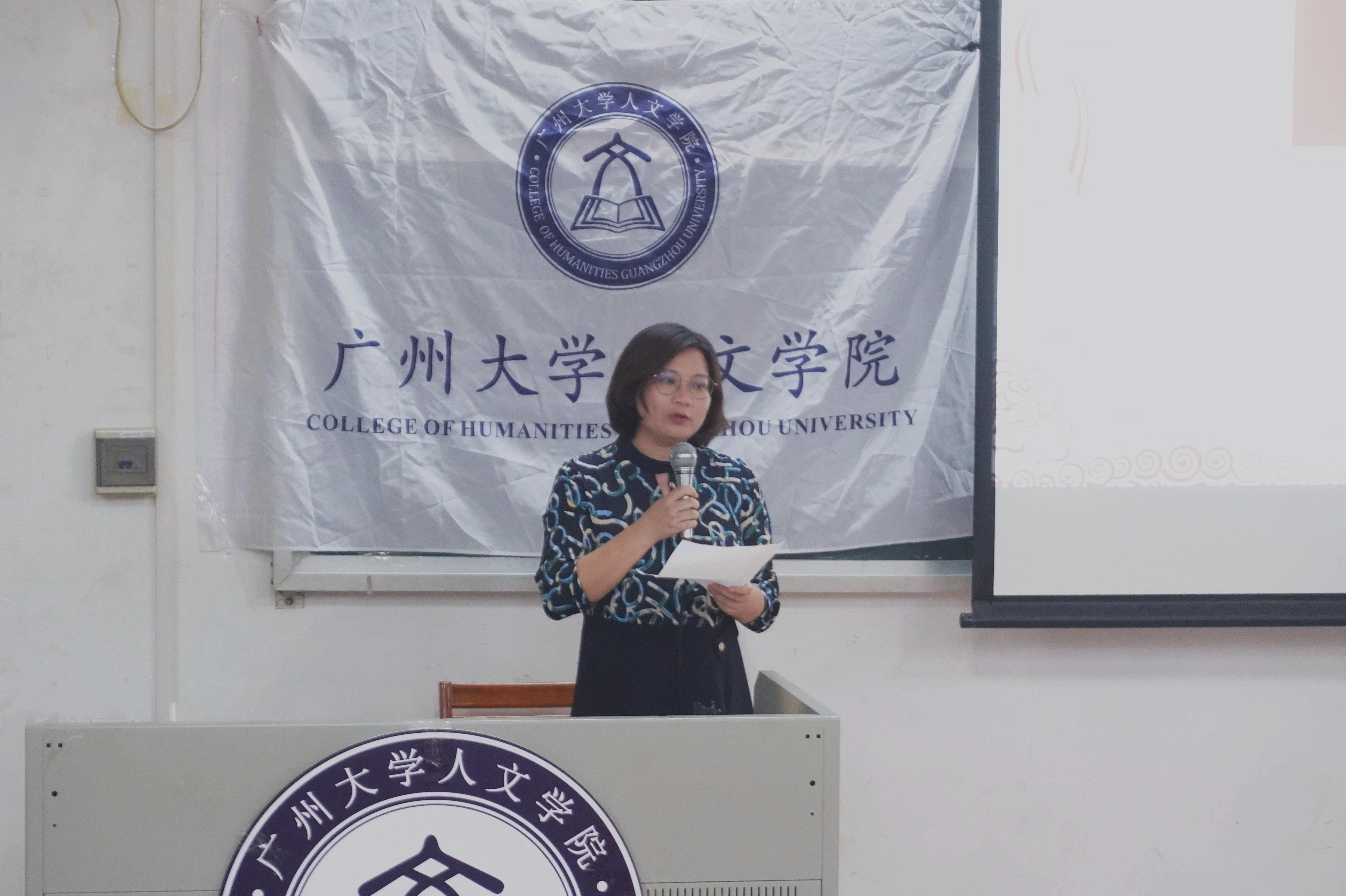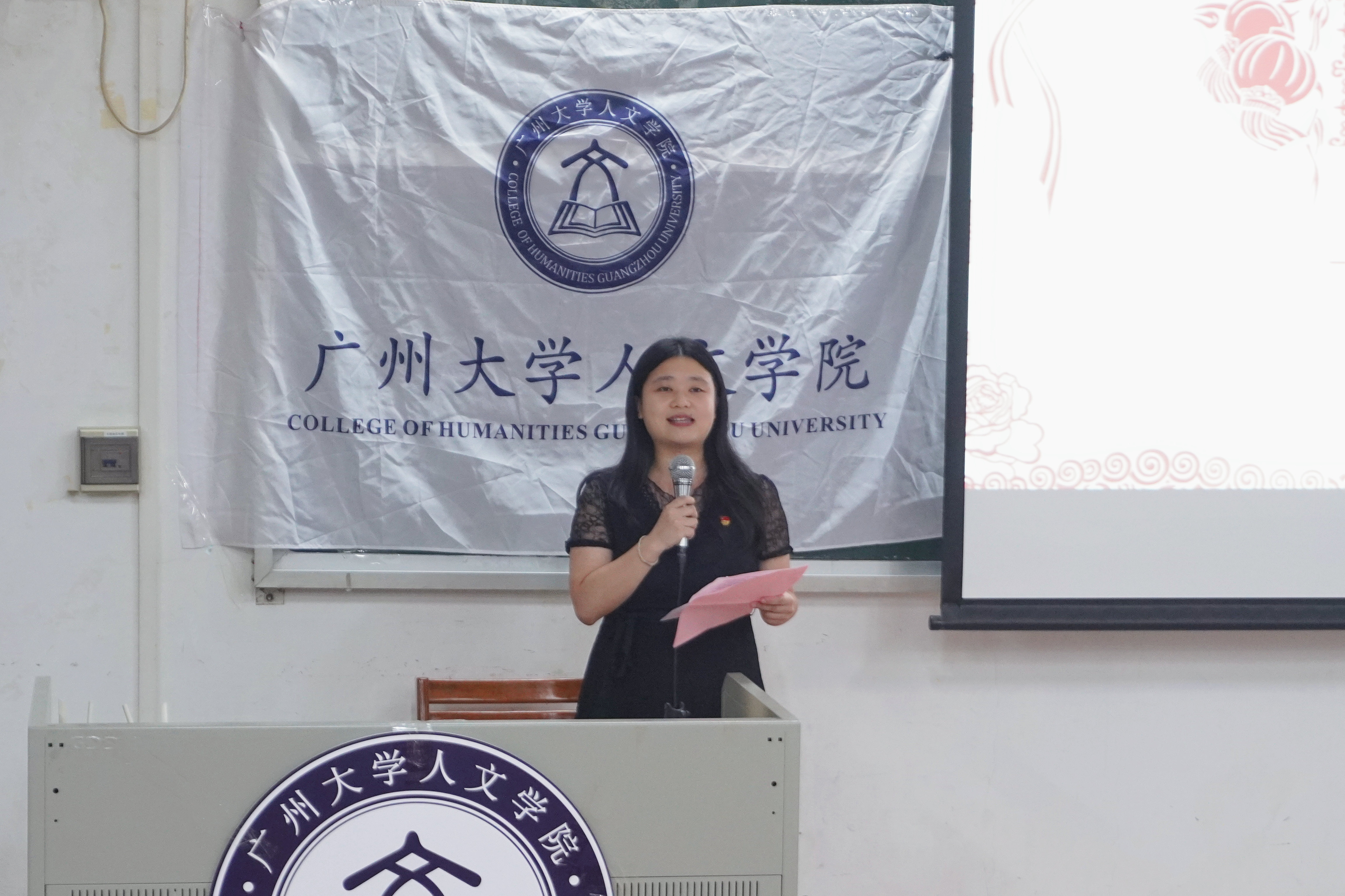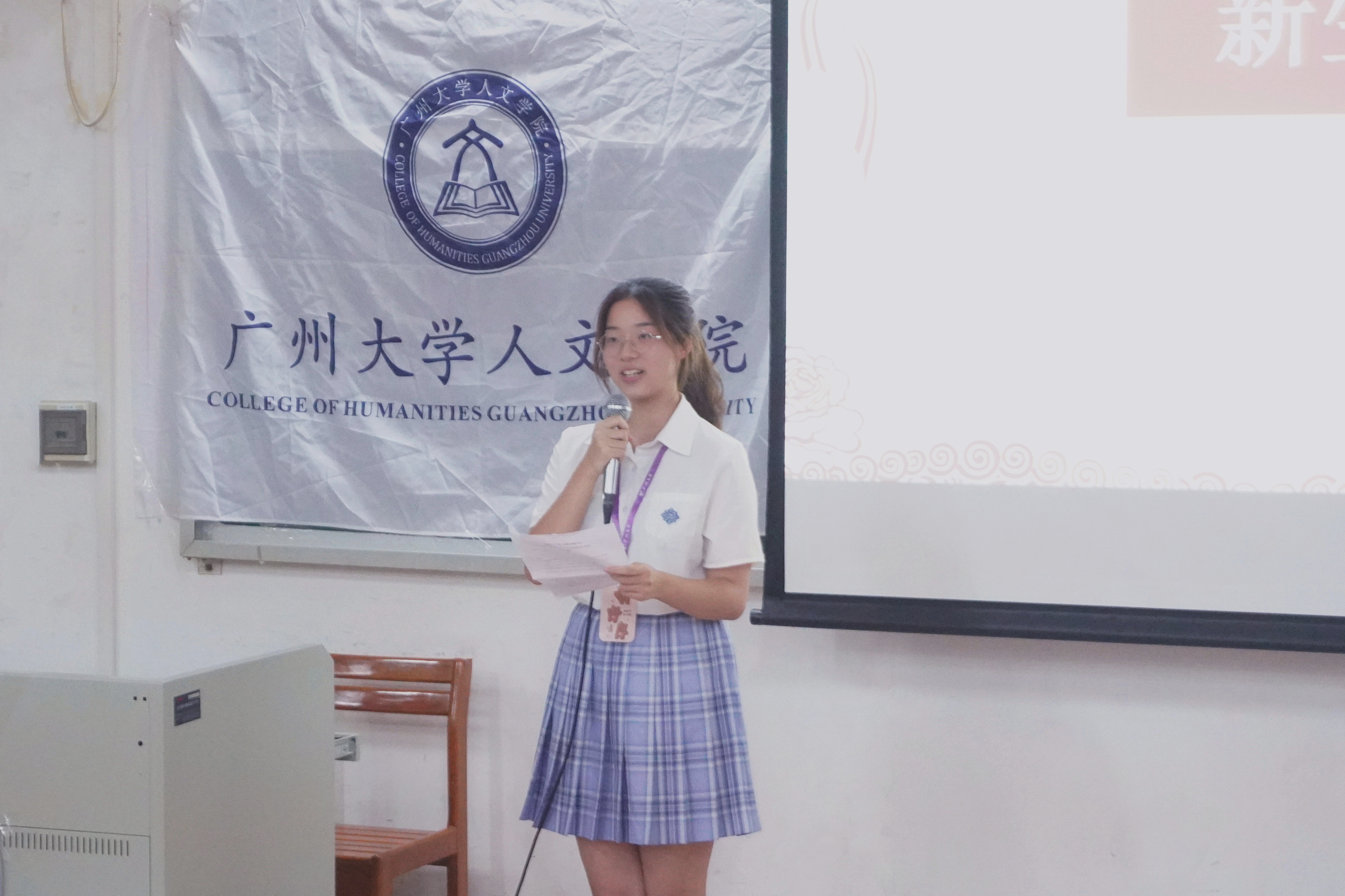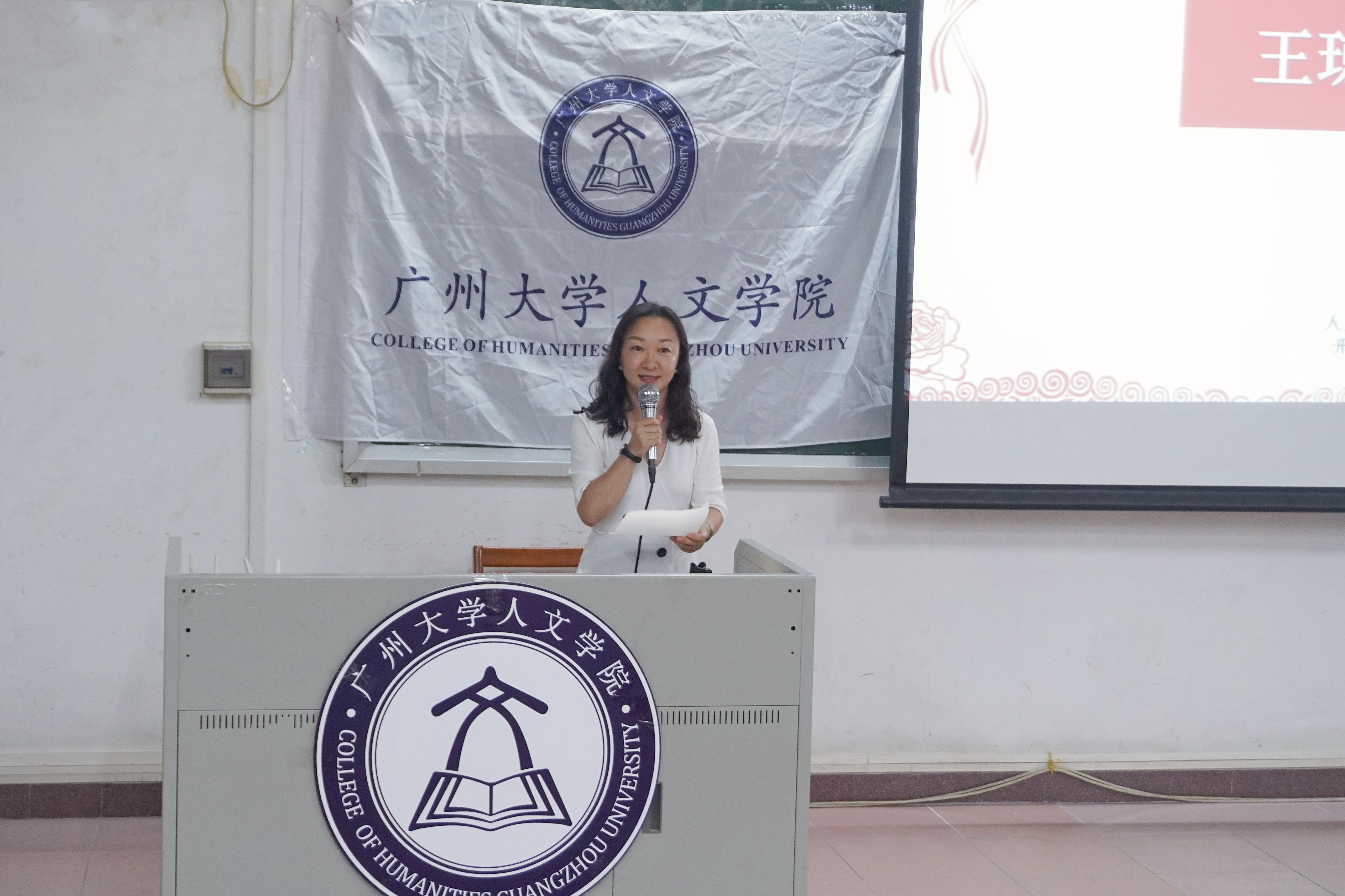 党委书记王琼老师上台致辞。她欢迎同学们加入人文大学庭,并鼓励同学们在大学里树立目标,规划自己的大学生活,把握好大学这一时期,不断前行。王书记向同学们介绍了成人电影