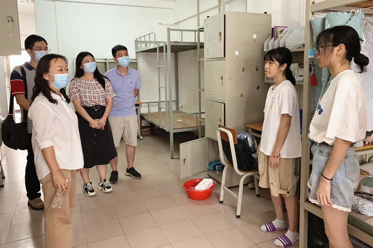 党委书记王琼老师、党委副书记张立老师以及2021级新生班主任林瀚老师、刘畅老师、彭贵昌老师和学工办全体辅导员走访学生宿舍,了解学生报到情况,勉励同学们潜心学习,莫欺莫负好时光,做有底气、有勇气、有志气的人文学子。