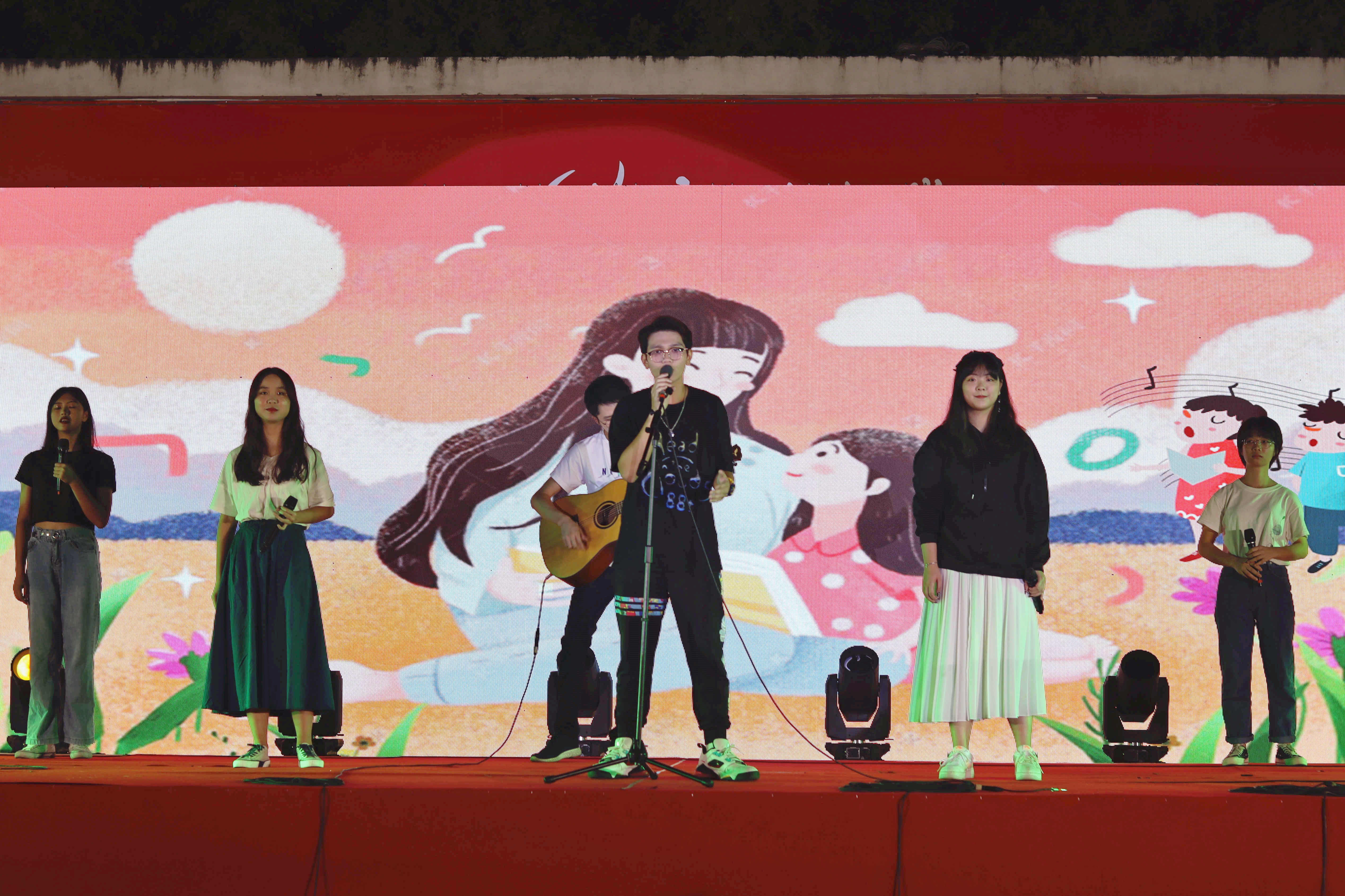 晚风舞着树影,灯光迎着热烈。晚会伊始,历史211班、历史212班、汉语212班和汉语214班合作表演的《Peace and Love》用动人的歌声为晚会做了一个精彩的开场。