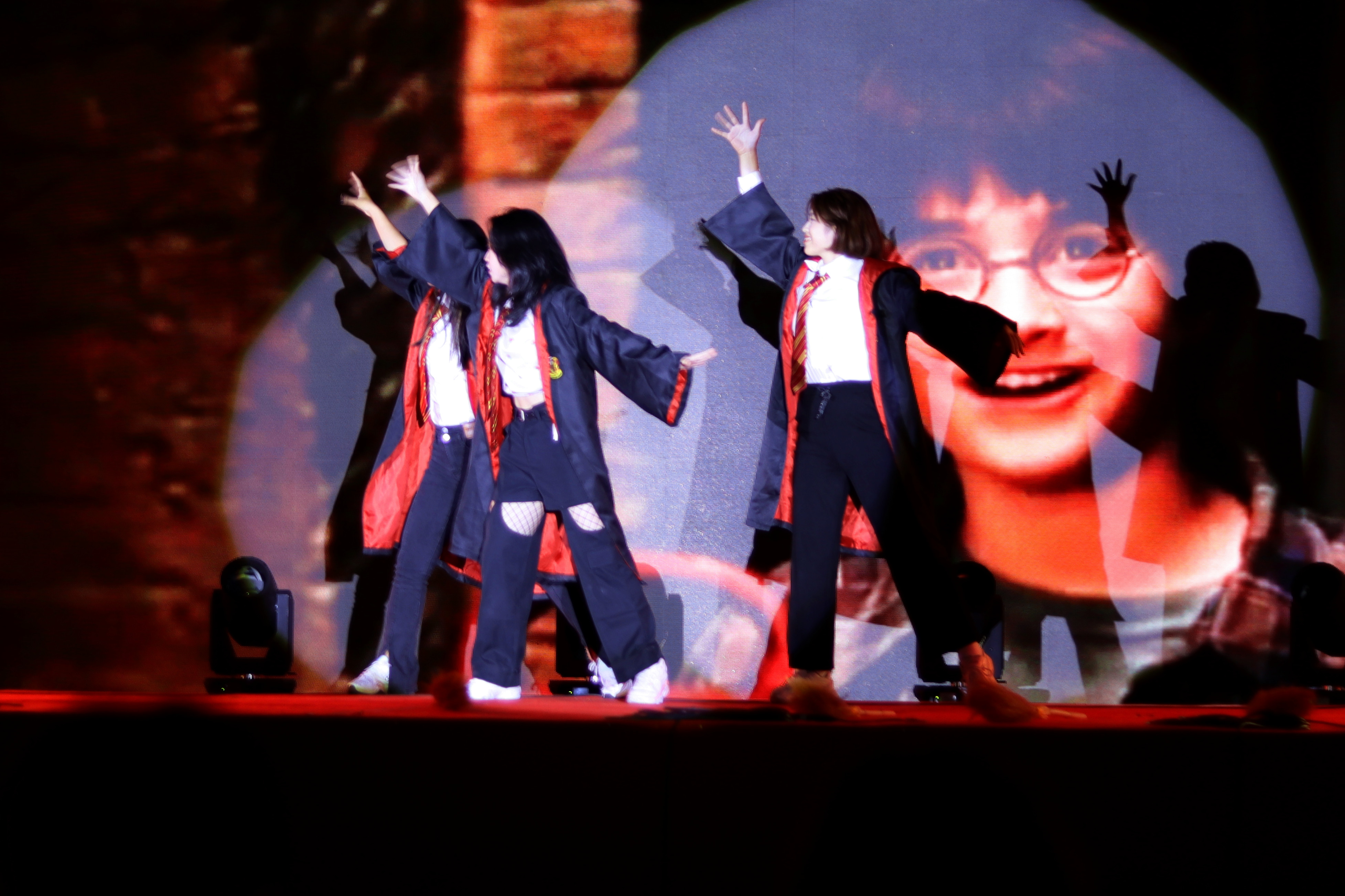 一段悠扬空灵的旋律响起,奇幻酷炫的魔法世界渐渐呈现在观众眼前。汉语217班的表演《哈利波特》青春洋溢,以动感的舞步展现一场非凡的奇妙旅程。